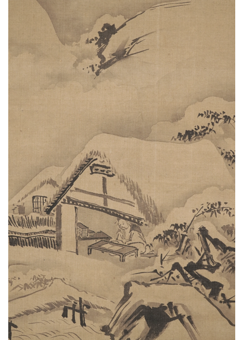 絹本水墨 高嵩谷箱書 55.5×26 66×110.5cm 表具微少オレ