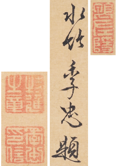 水竹季忠題」絹本着色 二重箱入 32×95.5 46.5×178cm 表具微少オレ・少虫穴 大倉好斎極